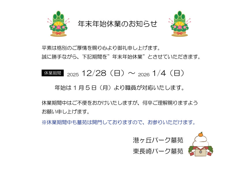 港ケ丘パーク墓苑・東長崎パーク墓苑は公益財団法人が運営・管理を行っております。